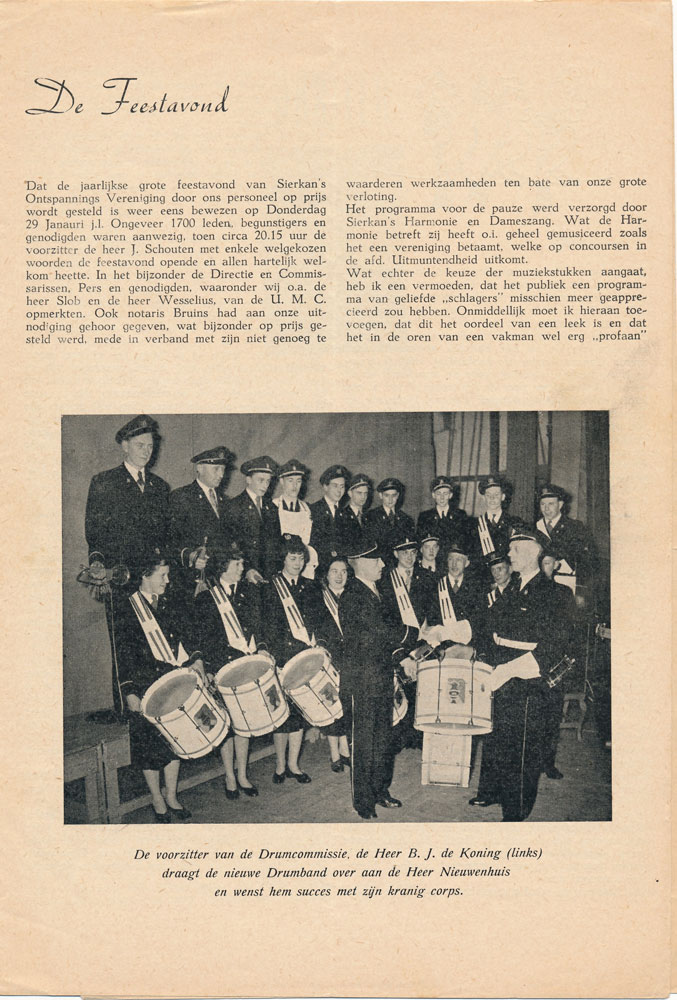 Van De Sierkan Bedrijfsnieuws zijn helaas maar twee nummers overgeleverd en die staan beide in het teken van het 75-jarig bestaan in 1954. Daardoor geeft het maar een beperkt beeld van de normale inhoud van het blad. In tegenstelling tot De Schakel, waar een enkel portretfotootje in staat, werd hier ruim gebruik gemaakt van foto’s. Nummer 2 van de 2e jaargang gaf na het verslag van het grote feest in de Houtrusthallen nog een aantal artikelen, die op het terrein van de producten en de afzet ervan lagen. Zo was er een artikel over bacteriën, het melkdieet en over het Sierkan wagenpark. Helaas moeten we het (voorlopig?) hiermee doen.