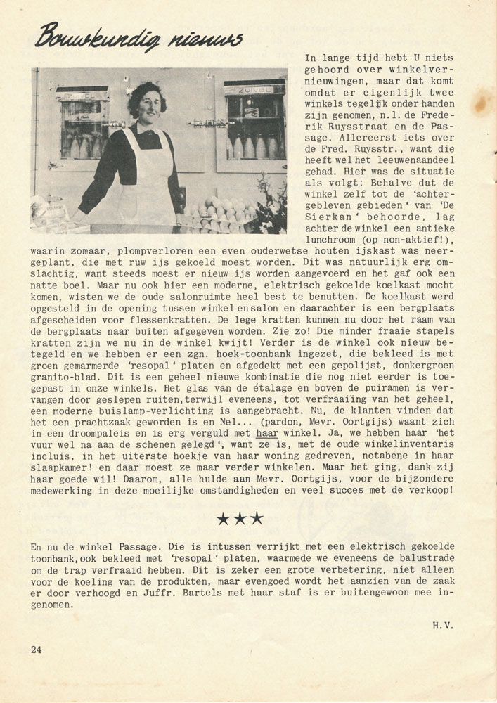 Het blad zag er professioneler uit dan de voorgangers met een inhoudsopgave op het eerste binnenblad. Ook de samenstelling van de inhoud werd gevarieerder. Naast de S.O.V.-afdelingen is er aandacht voor bedrijfszaken, zoals de melkbezorging, bouwkundig nieuws (verbouwingen van de Sierkan winkels), jubilea, vertrekkende medewerkers en de CAO. Er verscheen ook een vaste rubriek over geschiedenis door Oom Jacob en verstrooiing in de vorm van verhalen over de Deltawerken en “In de ban van de Inca’s”. Speciaal voor dit samensmeltingsnummer was het verslag van de jubileumviering van de S.O.V. in de Dierentuin, dat ook ruim was voorzien van foto’s.