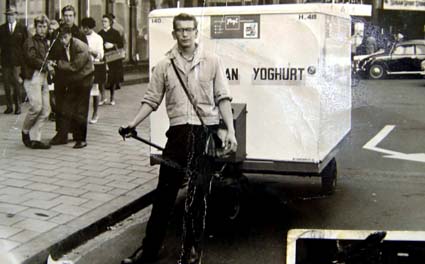 Ben Zuidwijk (1945) heeft vele stadia doorlopen bij De Sierkan, Melkunie, Mona en Campina. Hij is begonnen als reserveloper voor De Sierkan als jongen van 17 jaar oud. “Op dat moment gingen de handkarren die je zelf moest duwen er net uit. Dat was in het begin van de jaren zestig. Er waren toen ook karretjes waar je in kon zitten; die werden voornamelijk gebruikt voor in het centrum van de stad, bij de winkels van de Vlamingstraat en de Passage.”