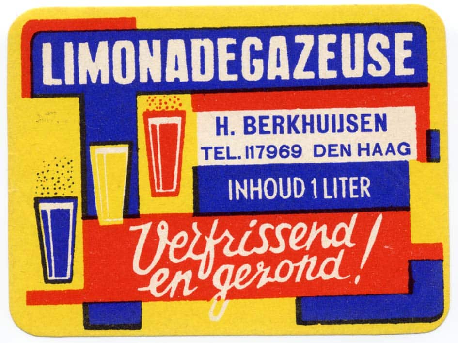 “We hadden ook een soort etiketje met een raar mannetje met een rietje erop. Ja, die etiketten… dan kreeg je een bord stijfsel, waardeloos, dat je als kind op de woensdagmiddag die flessen moest plakken. Op zo’n stuk van onderen moesten die etiketten komen.”