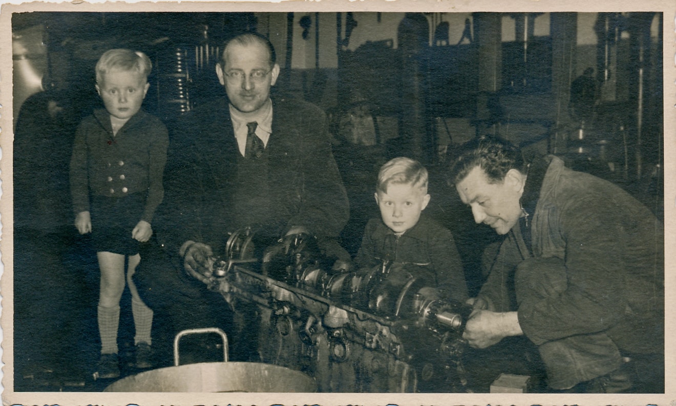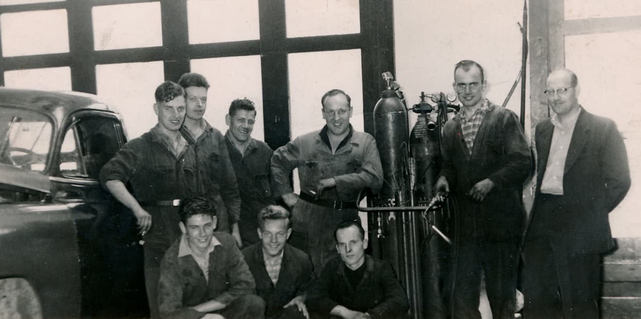 Ik ben de oudste van de acht en de broer waar ik mee werkte, Jos, dat was de derde. Jos en ik hebben de zaak toen mijn vader stierf in 1975 overgenomen. Ik werkte er toen al jaren, mijn broer, die werkte er net een jaar, hij kwam uit dienst vandaan. Hij ging meer de boekhouding doen, die mijn vader deed. Ik deed altijd al de werkplaats. Ik was toen 18-19 jaar en het was heel gek, je had er natuurlijk ook mensen lopen van 30 of 40, dat was best wel raar. Toen we het eenmaal samen gingen doen, toen werd het anders, het was van jezelf”.