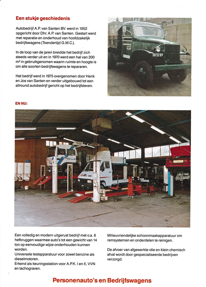 Toen gingen we meer naar de bestelwagens en toen ging het wel weer goed, maar het veranderde. Wij hadden aan de Prinsegracht hefbruggen liggen van 14 ton, daar konden zware trucks op. Wij waren één van de weinigen in Den Haag, die APK keuringen deden. De APK 1, dat was in die tijd heel bijzonder, dat is veel eerder begonnen als de APK voor personenwagens. Daar werden ook de eisen steeds strenger van en toen moesten we op een gegeven moment een remmenbank hebben en die konden we op de Prinsegracht niet plaatsen.