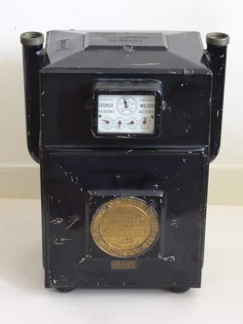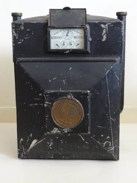 De meter uit 1939 is overigens 1,5 kilo zwaarder dan de andere twee meters dus wellicht zit dit in het ingenieuze octrooi mechaniek van schuiven, balgen en slingerende hefbomen nog in het binnenste verborgen.