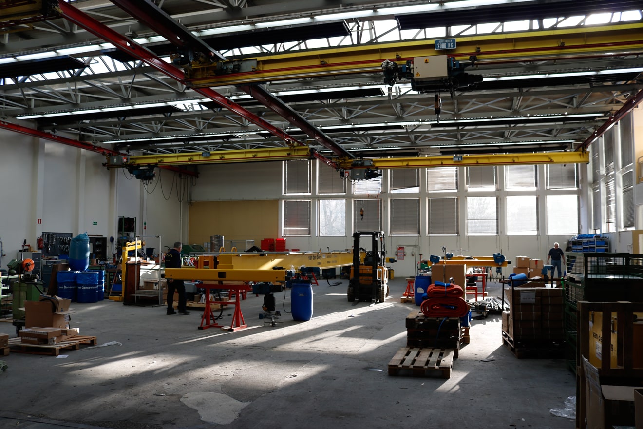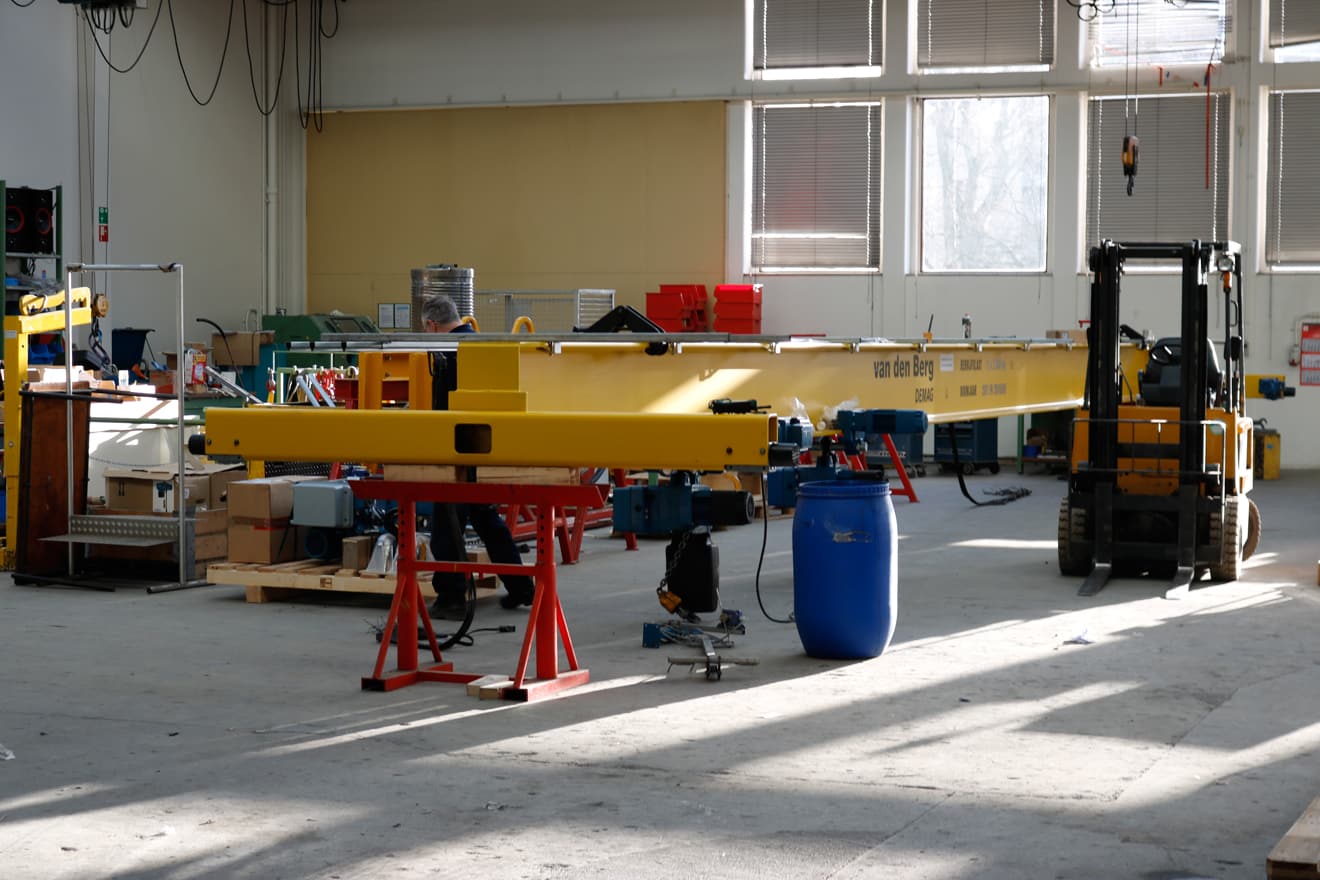 “We hebben toentertijd 80 kranen per jaar verkocht en uiteindelijk toen het hoogconjunctuur was, echt fantastisch, gingen we over de 120 kranen per jaar, dat kan een kraan zijn van 20 meter, maar dat kan ook een kraan zijn van drie, vier meter, want we maakten niet alleen kranen maar ook hangbaansystemen van Demag, die hingen we ook op bij klanten.”