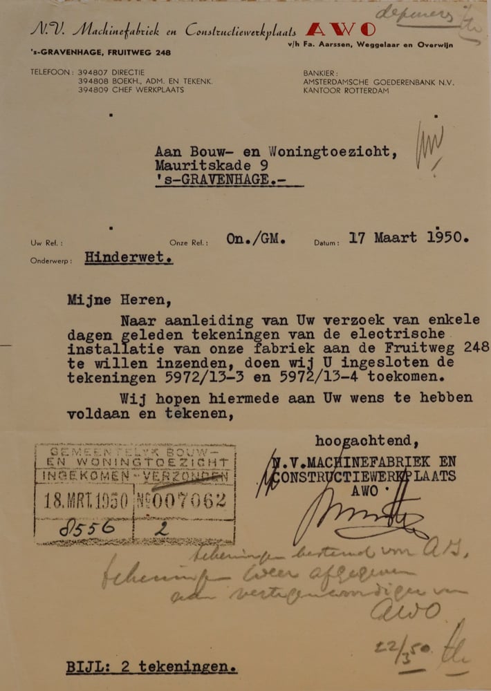 Een toevallige ontmoeting tijdens de plaatsing van een nieuwe gasmeter leidde tot een gesprek over het vorige bedrijf waar de heer Jos Hengeveld voor werkte, de firma Van den Berg aan de Fruitweg (of eigenlijk AWO, maar dat werd pas duidelijk in het gesprek). Voor het zover was dat we aan dit bedrijf toe kwamen, passeerden nog een aantal andere werkplekken.