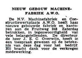 “AWO dat was een constructiebedrijf dat had meneer Van den Berg zijn vader, die had het ooit eens opgekocht, zeg maar en daar zat het plan achter om daar kokerliggers (een ligger in de vorm van een koker – dus hol) te maken. En dat is natuurlijk ook gelukt. Daar produceerden we alleen maar kokerliggers en daar waren ook wel balkliggers, maar alleen puur voor de kranen.”