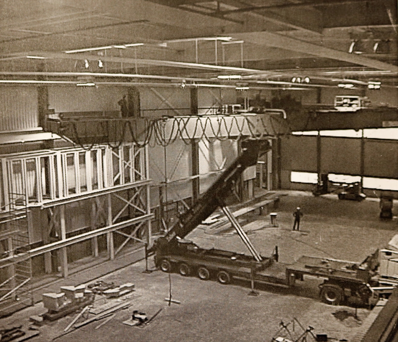 Ja, de voorbereidingen; de complete kokerligger werd gemaakt, wielkasten, alles werd uitgelijnd, het werd gestraald, het werd geverfd en als dat helemaal geverfd en gestraald was, ging dat compleet op een platte wagen met een trekker. Dat werd daar helemaal geassembleerd. Dan werden dus de bedradingen, de railsen, de motoren werden erop geplaatst en als die dan helemaal klaar was dan werd ie getest. Nou als dat dan helemaal klaar was dan werd er een vrachtwagen geregeld om dat te verplaatsen. Nou dat maakt niet uit hoe lang die was. Ik meen 25 of 26 meter, echt enorme lange joekels. Daar was extra begeleiding ook weer bij. Ook wel kortere overspanningen. Dan kwamen wij en hadden we van tevoren al eens bij de klant bekeken, wat hebben we nodig of hoeveel weegt die ligger? Nou als we een schatting hadden gemaakt, hij weegt ongeveer 15, 16 ton, ok, dan wat hebben we dan nodig 25 ton of 50 ton, dan gingen we altijd samen met een bedrijf dat een mobiele kraan had, gingen we overleggen van waar moet ik staan. Wat is het bereik? Dus de afstand vanaf de giek naar het ijzer hoeveel ton, want als ik zeg ja hij is maar 15 of 16 ton, maar ik sta er veel verder vanaf dan moet ik een veel groter kraan hebben. Dat betekent soms wel eens dat je een 100 tonner moet huren om zo’n kraan te plaatsen. En er waren hartstikke leuke situaties, zeker, ook wel spannend soms.”