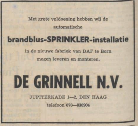 Wat er gebeurde na de oorlog en de opbouw van Europa, dat er een enorme toename was van de vraag naar sprinklerinstallaties. En toen heeft dat Engelse bedrijf Mather & Platt in een heleboel Europese landen vestigingen opgezet. In Nederland was dat De Grinnell, ze zijn begonnen in Leiden en zijn verhuisd naar Den Haag naar het gebouw aan de Jupiterkade. En dat gebeurde in alle landen, in Duitsland zelfs twee vestigingen. De mensen werden opgeleid door de deskundigen uit Engeland en zij namen dan Nederland voor hun rekening.