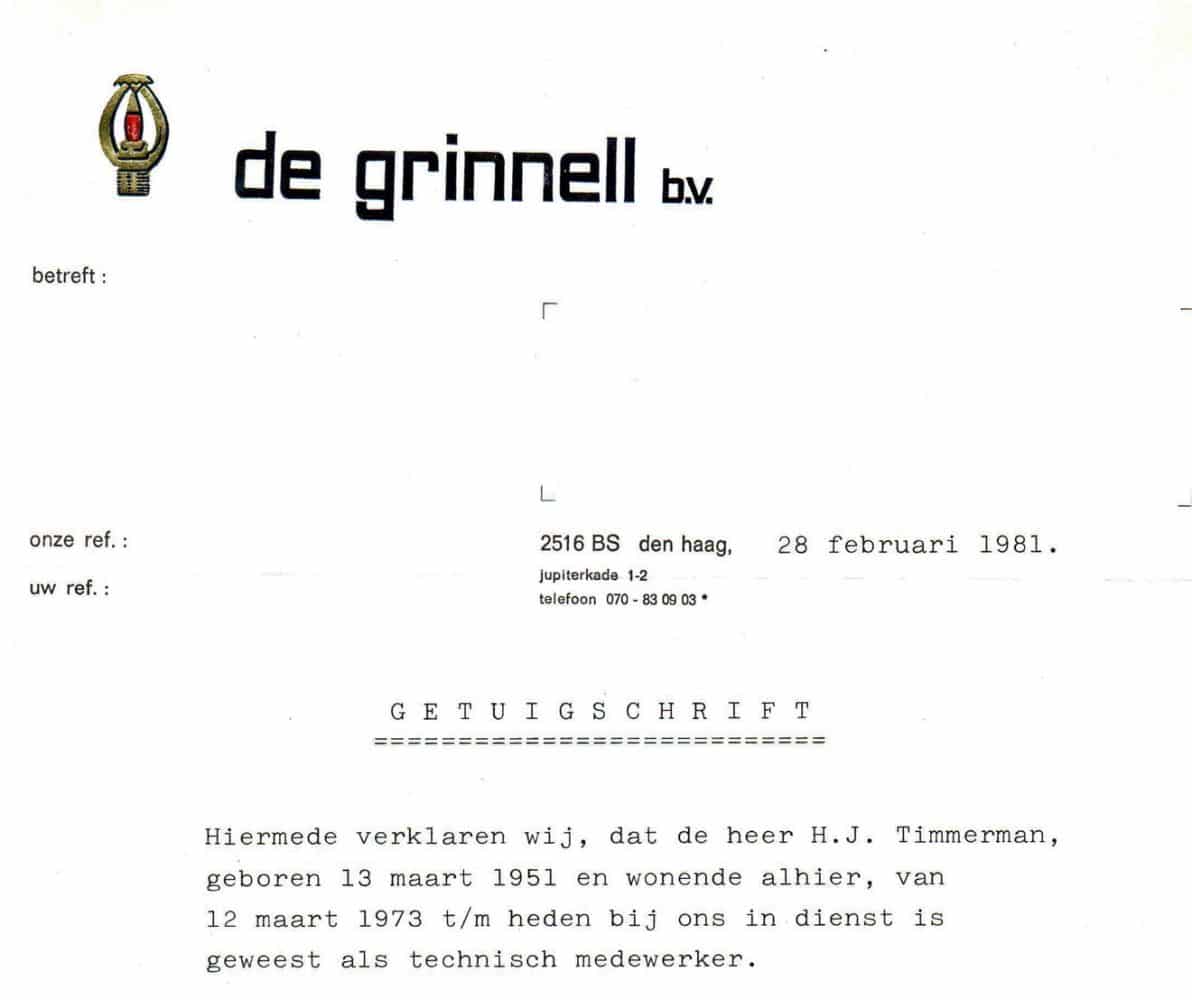 Vanaf 1973, ik had net mijn studie afgerond, heb ik bij De Grinnell gewerkt totdat ze verhuisden in 1991. Ik heb toen die verhuizing gecoördineerd, op 1 april 1990 zijn we naar Woerden gegaan. Inmiddels was het bedrijf gefuseerd met een bedrijf uit Lelystad.