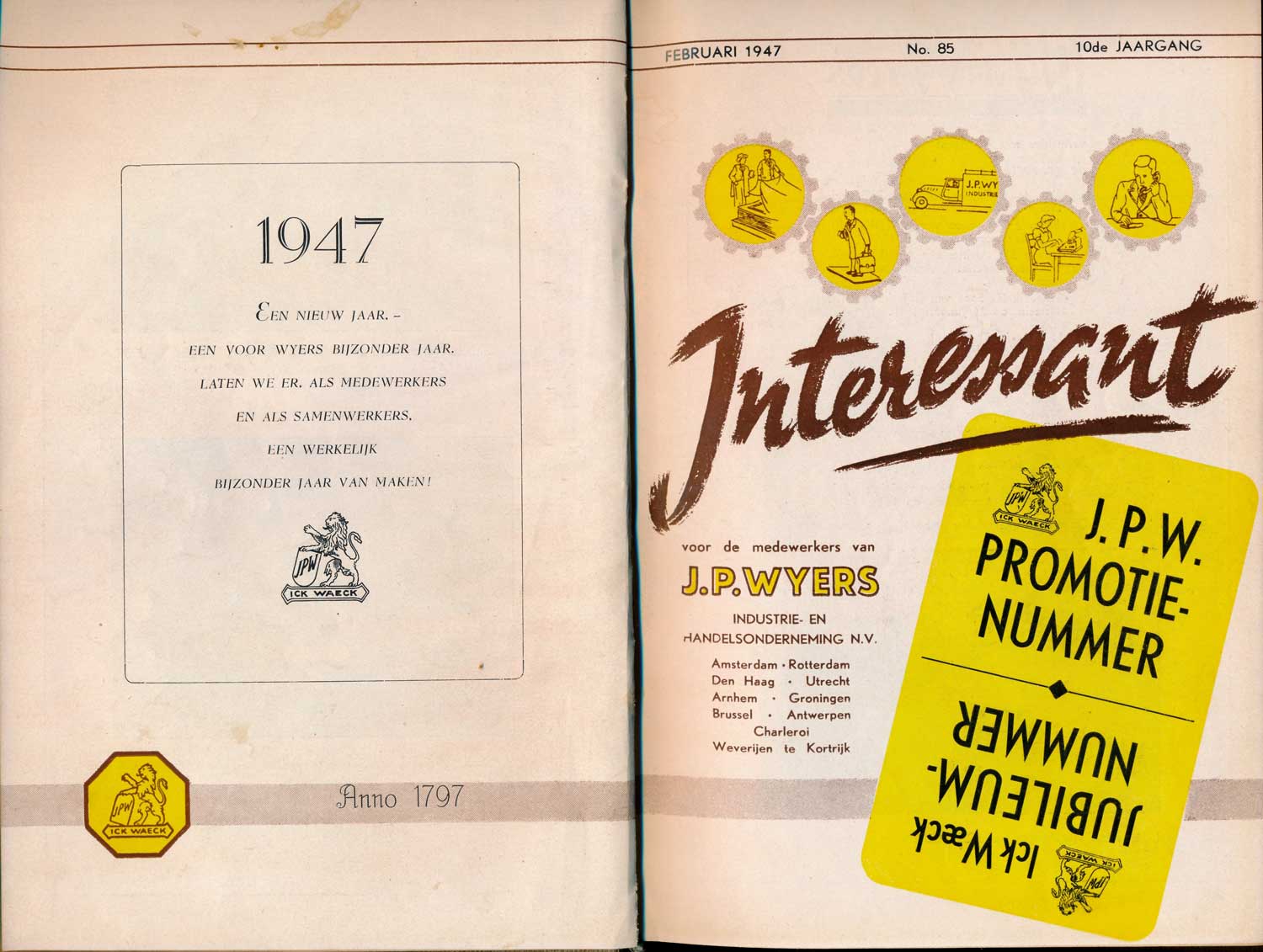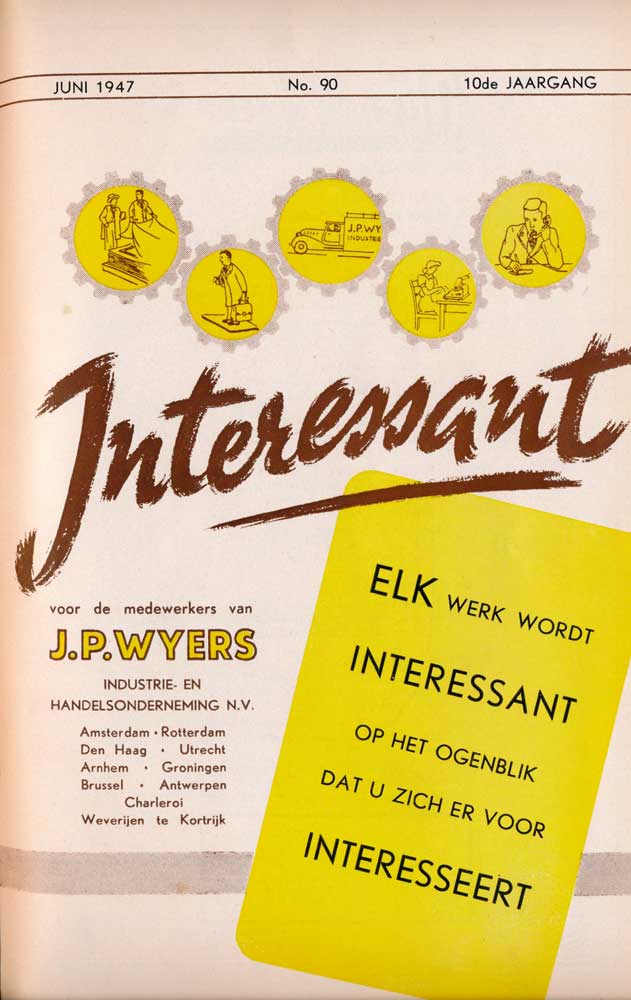 Een rubriek ‘Interessant van alle kant’ bood de mogelijkheid om over allerlei nieuws te schrijven. Interessant kende ook de ‘J.W.P. ideeënbron’, de rubriek die open stond voor ideeën vanuit het personeel. Een belangrijk onderdeel van het tijdschrift werd gevuld door de ‘bestuursmededelingen’ van NAO, de personeelsvereniging “Na Arbeid Ontspanning”, die in 1934 was opgericht. Hierin kwamen diverse activiteiten en sporten aan de orde: van zwemmen en tennis tot toneel, koor en clubavonden.