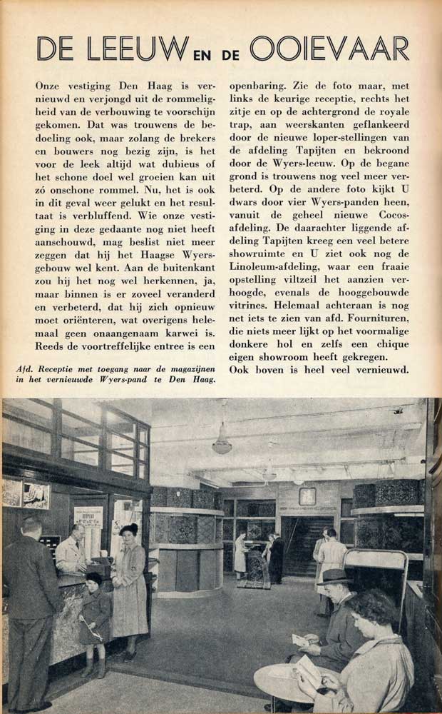 In Den Haag was Wyers gehuisvest aan de Prinsegracht 18. De firma gaf een personeelsblad uit met de titel Interessant. Het was een enigszins sober vormgegeven blad van 14,5 x 23,5 cm met het type krantenopmaak. Het omslag was voorzien van de titel in handschrift met enkele kleine getekende plaatjes van activiteiten in het bedrijf en het wapen van de zaak, een leeuw met de tekst “Ick Waeck”.In de jaren 50 veranderde de uitstraling doordat het omslag een achtergrond kleur kreeg met in de wit de handgeschreven titel en er kwam een grote zwart/wit foto bij, die iets belichtte van het bedrijf.