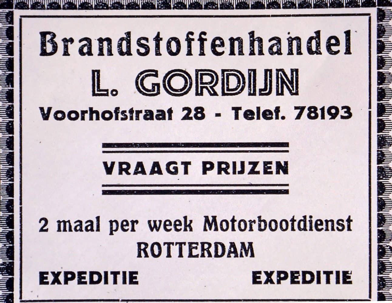 “Ja, dat was in 1976, de kolenzaak was toen al weg en het expeditiebedrijf, dat is in 1965 naar de Binckhorst gegaan. Dat zat in de Melkwegstraat-Saturnusstraat, op die hoek. Daar heeft Scholtes ook nog gezeten, met croquetten. Het expeditiebedrijf A.C.G. Gordijn is in 1989 naar de Broekpolder gegaan”.