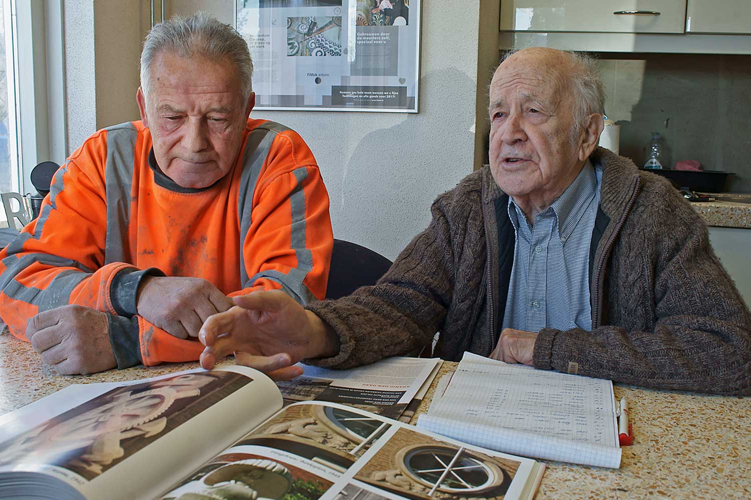 “Ja, vloerdelen, vloeren en we zaten hoofdzakelijk ook in het onderhoud voor de gemeente. Dus we sloopten lavetten er uit, oude aanrechten sloopten we en dan maakten we badkamervloeren, aanrechten en balkonvloeren. Eigenlijk was dat mijn werk, dat deed ik alleen maar.”