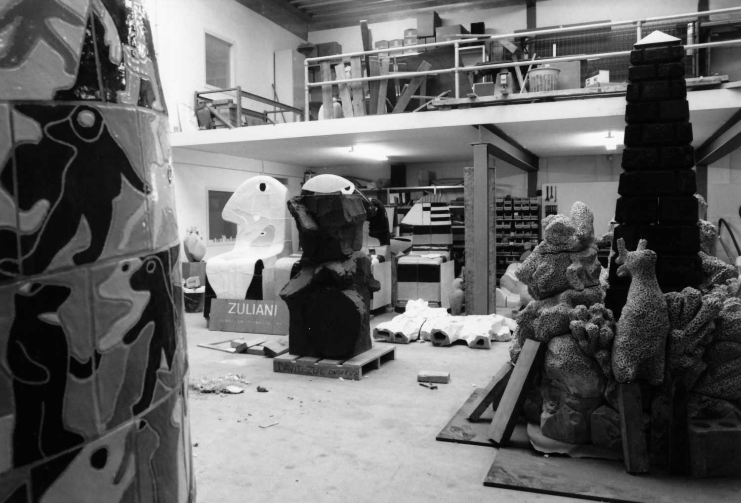 “Ja, ik pakte ook alles aan, je moet eten. Eigenlijk zijn we daar ook begonnen met het grootste keramiek van Europa, voor het Smakkelaarsveld in Utrecht. Voor David van de Kop, daar hebben we anderhalf jaar aan gewerkt. Na een jaartje kwam ook mijn vader naar mij toe. Dus toen zijn we samen verder gegaan, eerst in het Spinozapoortje en later zijn we naar het terrein van Zwolsman gegaan, het was naast Braber, die campinggashandel aan de Waldorpstraat. Zwolsman was ook een bouwmaterialenhandel. Daar hebben we een Romneyloods, zo’n halfronde loods, op gezet. Dat was eigenlijk onze eerste behoorlijke werkplaats. Toen maakten ze de Waldorpstraat tippelzone en toen was het over met onze rust. We hadden inbraak na inbraak en we werden uit de verzekering gezet. En ze stalen onze gereedschappen en onze beeldjes, alles. Dus toen zijn we in 1994 naar Zoetermeer gegaan.”