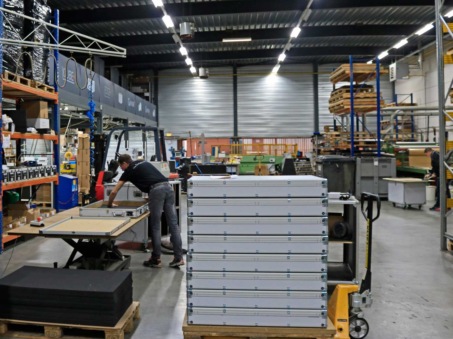 “Dat was in 2000 en toen heb ik weer even de rust genomen, weer even wat centjes verdienen en toen ook geïnvesteerd in nieuwe machines. Tenslotte in 2009, met het 50-jarig bestaan, hebben we de flightcase geïntroduceerd. Inmiddels was mijn zoon erbij, die waanzinnig technisch is, die dat eigenlijk helemaal op de rit heeft gezet. Vandaar dat er nu ook flightcases gemaakt worden, veelal voor de medische markt, maar ook voor bijvoorbeeld, dan kom ik weer even terug bij Hunter Douglas, als die een beurs hebben, dan hebben ze van ons grote flightcases gekocht, die slaan ze open en die kunnen ze allemaal aan elkaar koppelen en ze zijn in één keer klaar. Er zit verlichting in en allemaal hier ontwikkeld.”