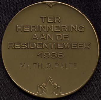 De afgebeelde penning werd uitgereikt aan penningmeester mr. Th. O. Palte van het comité. De penning van 50 mm doorsnee laat aan de voorzijde het oude Haagse stadhuis zien en aan de achterzijde de tekst van de Residentieweek en daaronder de naam van de geëerde. De penning werd ontworpen door de penningkunstenaar J.J. van Goor, die in deze periode bijzonder actief was op dit terrein.