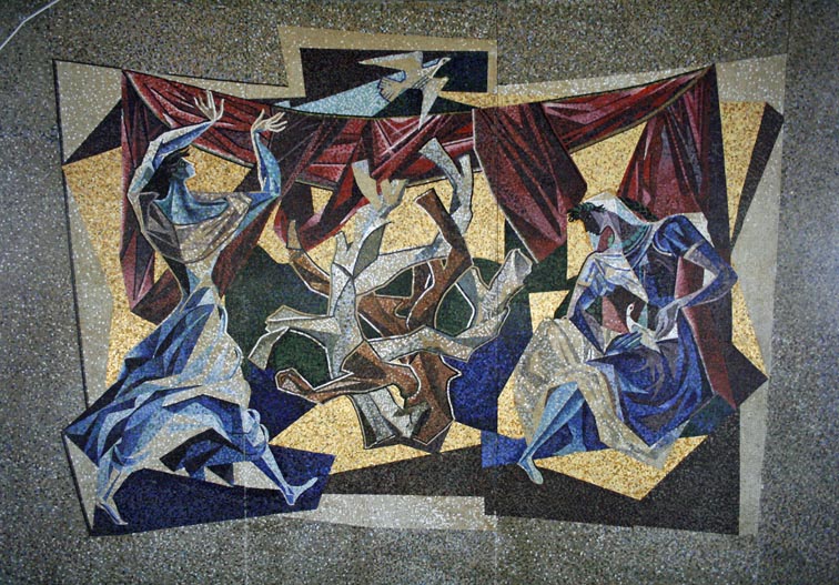 Het is vervaardigd door de kunstenaar Jacob Bouhuys. Het was zijn 50ste mozaïek dat hij hier afleverde. Het kunstwerk was een geschenk van het personeel ter gelegenheid van het 50-jarig bestaan van de Haagse telefoondienst. Het geheel is 8 cm dik en weegt 4 ton.