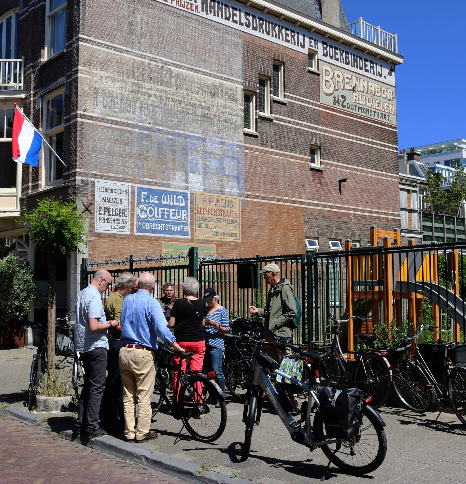 Ook op vrijdag leidde SHIE-voorzitter Koos Havelaar een fietstocht langs tegeltableaus van de Haagse firma Rozenburg. Rozenburg werd vanaf 1890 wereldberoemd om zijn unieke keramiek en eierschaal porselein. Veel musea hebben voorwerpen van deze fabriek in hun collectie. Rozenburg produceerde daarnaast ook grote tegeltableaus die in de gevels van gebouwen werden geplaatst, soms als decoratie maar ook als reclame. In 1903 werd een nieuw procedé geïntroduceerd waardoor de tegels veel beter bestand waren tegen de buitenlucht. De route leidde langs 15 locaties met deze bijzondere tegeltableaus. Zelf een keer de route fietsen? Het boekje is hier te bestellen.