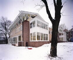 De nieuwe school in de sneeuw in februari 1995; foto: Rien van Rijthoven, Haags Gemeentearchief