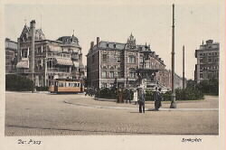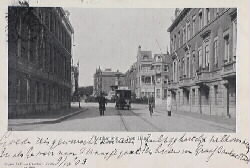 Bankaplein met tram; foto voor 1928; gebouw achter tram is pension Insulinde (zie bericht 130); foto: Haags Gemeentearchief