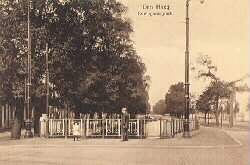 Javabrug in 1919 gefotografeerd staande op de brug. Nog zonder de beeldhouwwerken van Gra Rueb; foto: Haags Gemeentearchief.