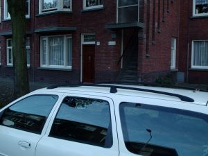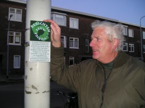 De heer van en Burg bij het zojuist opgehangen bordje 505, foto: heer H. Peers, 12 december 2005