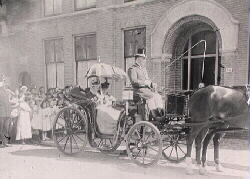 in de koets) bezoekt het (foto Gemeentearchief Den Haag).