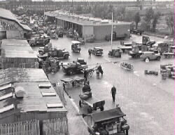 Snelle vooruitgang De Tweede Wereldoorlog was, zoals overal, een slechte periode voor de Groothandelsmarkt. Na afloop gingen de ontwikkelingen echter snel bergopwaarts. Er kwamen steeds meer grote bedrijven, die de kleintjes verdrongen, het assortiment werd uitgebreid en steeds meer vond het transport via de weg, met vrachtauto's, plaats. In 1961 werd de haven op het terrein dan ook gedempt en vanaf 1971 was het spoor ook overbodig geworden.