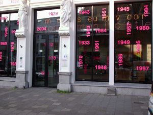 Het museum op de ochtend van 18 mei 2004, versierd i.v.m. 75-jarig bestaan.